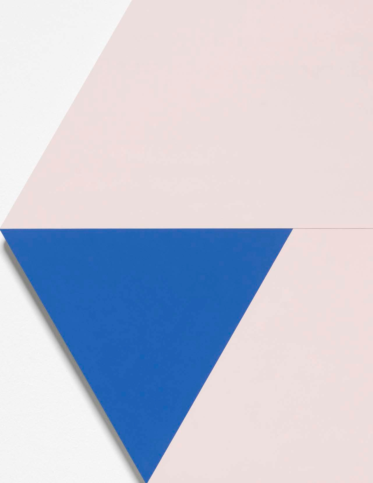 This abstract artwork features a striking geometric composition, with sharp angles and bold colors. The dominant colors are a vibrant blue and a soft, pale pink, creating a striking contrast. The overall arrangement is asymmetrical, with the blue and pink panels forming a dynamic, angular design. The work appears to be painted on a flat surface, showcasing the artist's mastery of clean lines and precise application of color. This minimalist piece likely reflects the influence of Modernist and Constructivist art movements, emphasizing form, color, and spatial relationships over representational imagery. ...